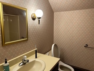 #BathroomRenovation #HomeGlowUp #DramaticDecor #GlamBathroom #InteriorDesign #BoldWallpaper #PinkVanity #VacationHomeDesign #SecondHome #CustomBathroom
